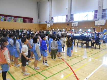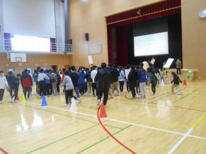 卒業生と学年毎に対決している27日(火)です。昨日は、2年生が爆弾ゲーム(左)で、1年生が○×クイズ(中)で対決しました。
