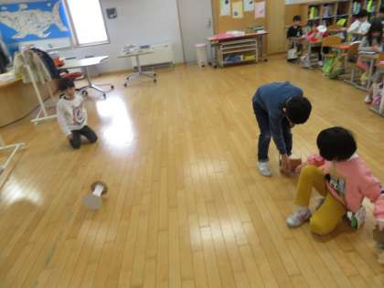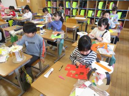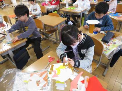 図画工作科でコロコロ転がる飾りをつくっています。それぞれ、動物や星空などテーマを決めています。転がり方を試しながらどこに飾りを付けるかをよく考えています。