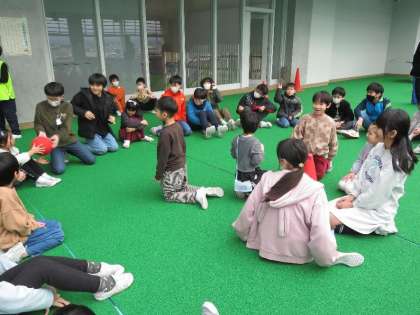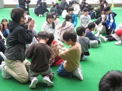 卒業を祝う週間の企画で、6年生と一緒に爆弾ゲームをしました。