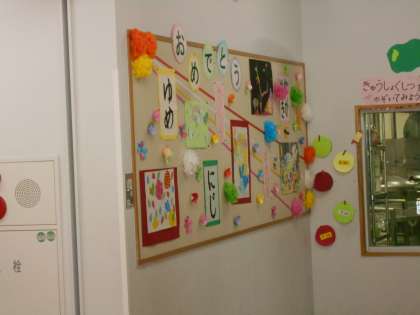 掲示物の卒業式一色の5日(火)です。5年生が飾ってくれました(左)。