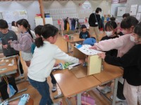 長さの異なる2種類のストローと粘土を使って直方体と立方体の模型を作りました。