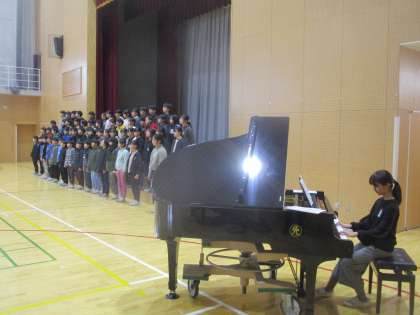 子供たちは卒業式の練習に日々真剣に取り組んでいます。歌の練習や卒業証書授与の練習では、多くの先生方にもアドバイスをいただきました。