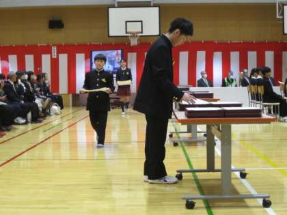 卒業証書授与では、1人1人が校長先生から卒業証書を受け取りました。歩き方や姿勢などを通して、子供たちの成長した姿が伝わってきました。
