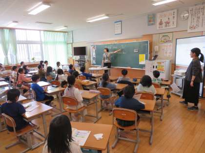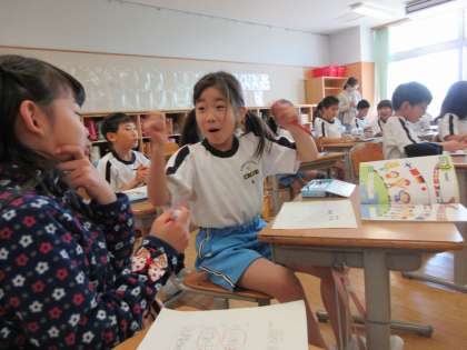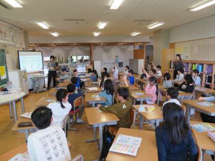 外国語活動の授業がスタートしました。子供たちは、積極的に英語を話して楽しんでいました。
