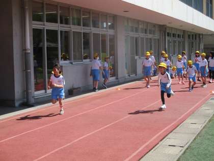 5年生は体育の授業で、50m走のタイムを測定しました。子供たちは、速く走るポイントを意識しながら、全力で走っていました。これから、運動会の練習が本格的に始まります。練習を重ねていく中で、自己記録の更新を目指していきます。