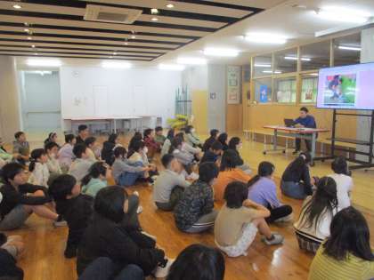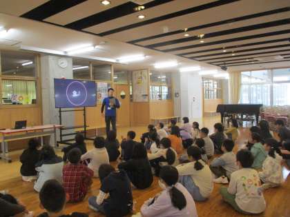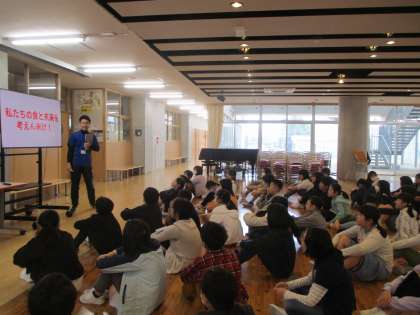5年生は学年集会で、総合的な学習の時間の学習内容について話し合いました。「私たちの食と未来を考えん米け!」と題し、稲作体験を行いながら、自分たちの身近な「食」をテーマに調べ学習を行います。実際に「セントラル水田」をつくり、自分たちで米をつくることができると知り、子供たちからも歓声が上がりました。