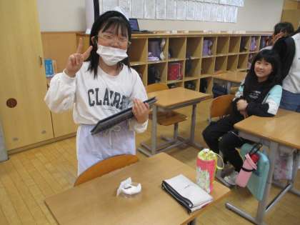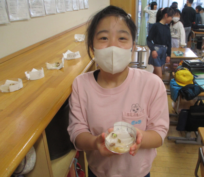 理科「植物の発芽と成長」の学習では、種子の発芽に水が必要かどうか実験をしています。子供たちは、クロムブックを使って、インゲンマメの発芽の様子を日々記録しています。水を与えたインゲンマメと水を与えなかったインゲンマメを比較し、水を与えた方のインゲンマメだけが発芽したことから、種子の発芽には水が必要であることが分かりました。