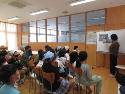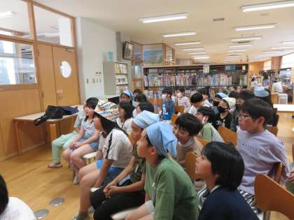 今日の昼休みに、ひだまりの会の方から読み聞かせをしていただきました。ページをめくるたびに、驚きながら、話に聴き入っていました。