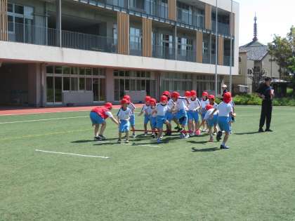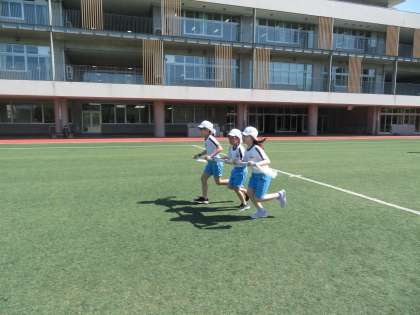 運動会に向けて、セントラルハリケーンの練習をしています。コーンからなるべく離れずに回ることを意識し、同じ団の仲間と声を掛け合う姿がたくさん見られます。本番が楽しみですね。
