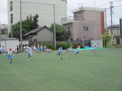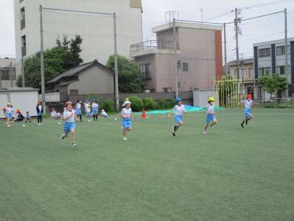 5年生は運動会の個人走で、50m走を行います。子供たちは速く走るための「腕の振り方」や「足の使い方」といったポイントを意識しながら、何度も練習に取り組みました。