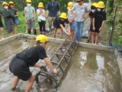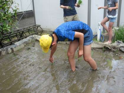 「セントラル水田」を使って田植えを行いました。子供たちは、JAなのはなの方の説明を聴き、真剣に田植えをしていました。初めての田植えを楽しみながら、笑顔で取り組む姿も見られました。