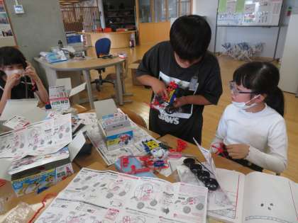理科では、電気のはたらきについて学習しています。まず、班ごとに説明書をみながら車を作りました。分からないことを同じ班の友達と確かめながら、丁寧に組み立てています。