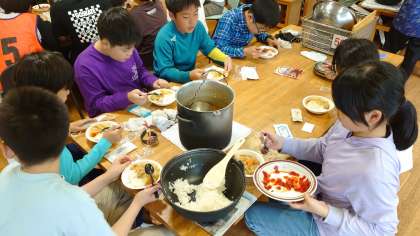 各班、力を合わせて調理したカレーが出来上がりました。 いただきます!
