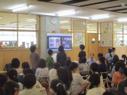 マレーシアのバトゥ・ラウト校(SKBL)とオンラインで交流し、お互いの学校で取り組んでいる学習の様子について伝え合いました。5年生は総合的な学習の時間で取り組んでいる「私たちの食と未来を考えん米け!〜米作りから持続可能な社会を考えよう〜」について紹介しました。バトゥ・ラウト校のプレゼンテーションも真剣に聞き、気になったことについて質問する様子が見られました。