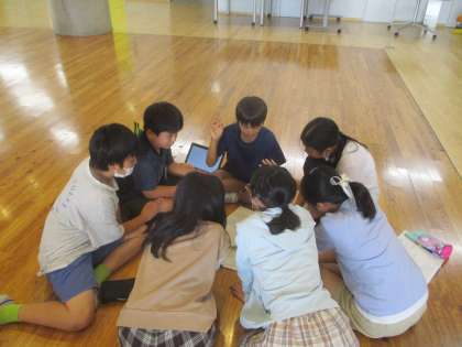 今回の宿泊学習事前打ち合わせでは、班ごとに分かれて食事と清掃についての説明を行いました。食事係からはクロムブックを使って、野外炊飯の注意事項やカレーライス作りのレシピ紹介、美化係からは担当の清掃場所や清掃方法の紹介がありました。