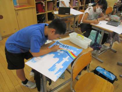 5年生は図画工作科の学習で、BFCのクラブ員として、火災予防に関する知識を防火ポスターとして多くの人に伝えようと作品を制作しています。子供たちは火災の怖さや火事を防ぐことの大切さが伝わるように、デザインを工夫する姿が見られています。