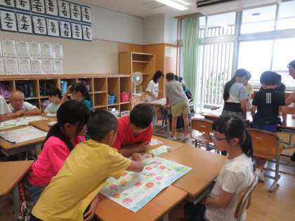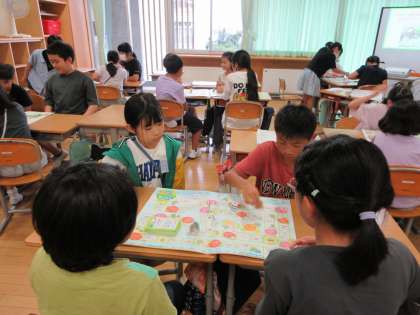 スライドでの授業の後、すごろくをしながら、地球温暖化を食い止めるために気をつけることを学びました。これからの自分たちの生活を見直していくことができるといいですね。