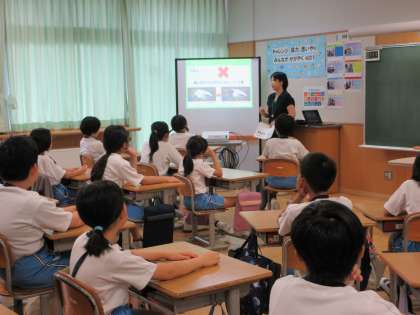 地球温暖化特別授業として、講師の方をお招きし、地球温暖化について詳しく教えていただきました。地球温暖化が進むことで、わたしたちのくらしに大きな影響が起こることを改めて知りました。