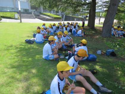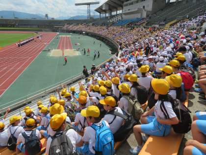 チャレンジ陸上記録会に参加しました。市内の6年生と一斉に集い、交流を深めました。