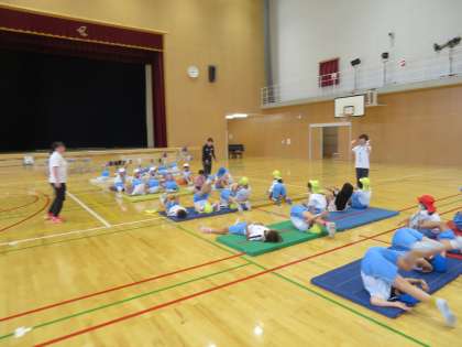 スポーツ指導員派遣事業によるマット運動の授業が行われました。