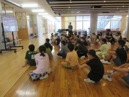 子供たちは自分の担当の仕事を確認し、当日の動きをイメージしながら、先生の話を真剣に聞いていました。高学年として、自分の役割に責任をもって活動する姿を期待しています。