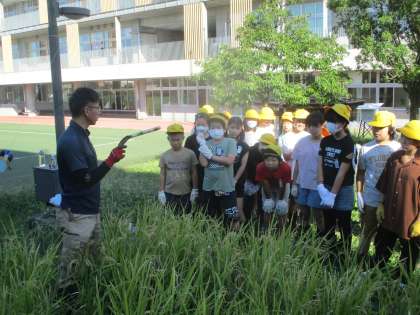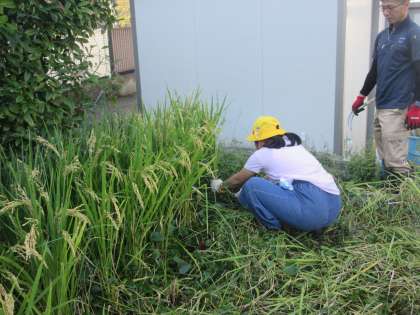 総合的な学習の時間にJAなのはなの方をお招きして、5月の田植えから、今までずっとお世話を続けてきた「セントラル水田」の稲を手作業で刈り、米を収穫しました。子供たちは鎌の使い方に苦労しながら、力を込めて稲を刈っていました