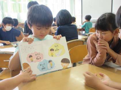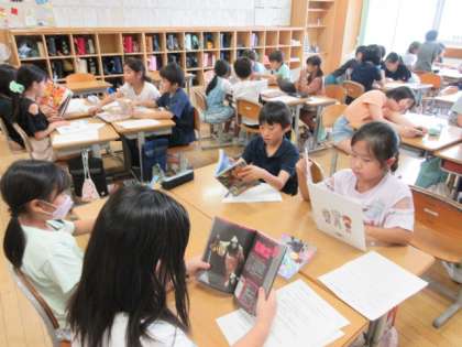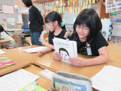 今日は読書フェスティバルがありました。ひだまりの会の方々による読み聞かせを楽しんだり、友達のおすすめの本を聞き合ったりして本に親しんでいました。