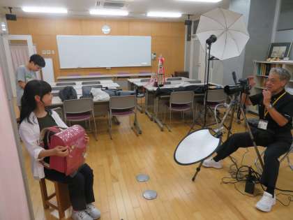 卒業アルバムの個人写真を撮影しました。本格的な撮影機材に少々緊張しつつも、6年間の思い出が残っているものと一緒に撮っていただきました。