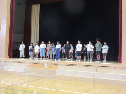 学習発表会では、「ビリーブ」と「カイト」の2曲の合唱の間に「カイト」の歌詞に込められた思いを劇にして発表します。子供たちは、学年集会で話し合った「カイト」の歌詞に込められた思いが相手にしっかり伝わるように、声の大きさや間を意識して、真剣に練習に取り組んでいます。