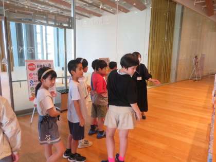 ガラス美術館と富山市立図書館は、学校からも近く、普段よく図書室を利用しているという子も多かったようですが、展示を見るのは初めて!とワクワクしている様子でした。作品を一つ一つ時間をかけて鑑賞し、思ったことや想像したことについて共有していました。