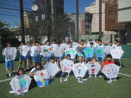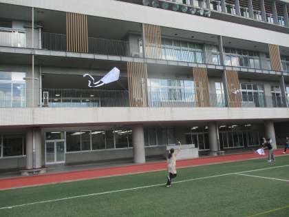 区域連合音楽会で合唱する、合唱曲「カイト」の歌詞に込められた意味を考えた子供たちは、自分自身の「夢」や「願い」を書き込み、1人1人の「カイト」をつくりました。「カイト」を完成させた後、グラウンドで空高く飛ばしました。中央小学校の5年生、みんなの願いが天まで届きますように。