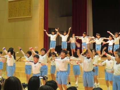 4年生 学習発表会 公開日 2024/10/12 更新日 2024/10/12 4年生 今日の発表に向けて、何度も練習を積み重ねてきた子供たち。発表前は、「緊張する」「うまくできるか不安」と話している子もいましたが、本番では、自分の技をきちんと決め、「やりきったぞ!」という表情で演技を終えることができました。保護者の皆様、本日はお越しいただき、本当にありがとうございました。