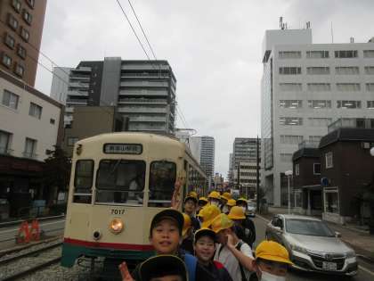 市電に乗ってオーバードホールに行き、劇団四季ファミリーミュージカル「ふたりのロッテ」を鑑賞しました。本格的な演劇は、初めての児童も多く、その雰囲気に圧倒された様子でした。富山市の6年生みんなで同じ時間に同じものを見るという貴重な経験もできました。