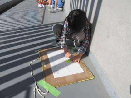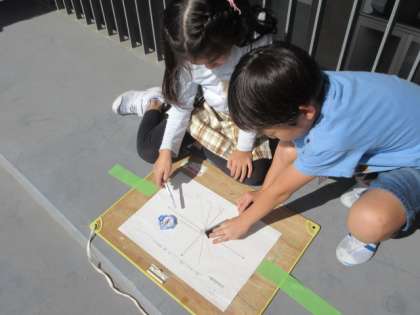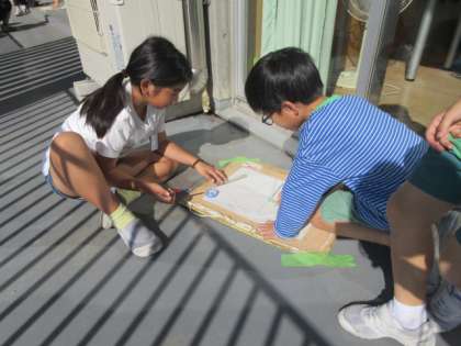 太陽とかげの位置関係について観察しました。午前と午後によってかげの向きが変わることに気づき、観察結果を話し合っていました。