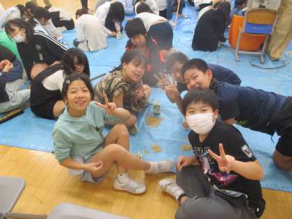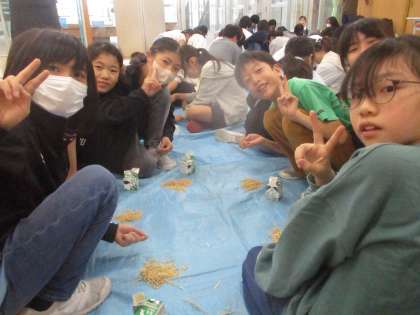 JAなのはなの方の説明を真剣に聴き、手作業で脱穀することの難しさを実感した子供たちでしたが、自分たちで育てた稲を嬉しそうに脱穀していました。