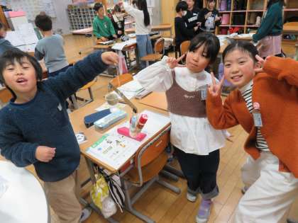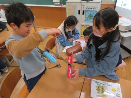 算数科「重さのたんいとはかり方」の学習では、道具を使っていろいろな物の重さを比べました。