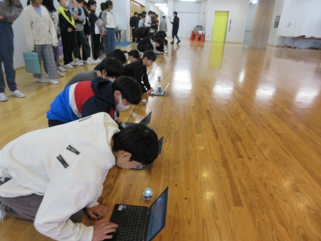 プログラミングについて教えていただき、ボール型のロボットを自分の思い通りに動くようにプログラムを組みました。