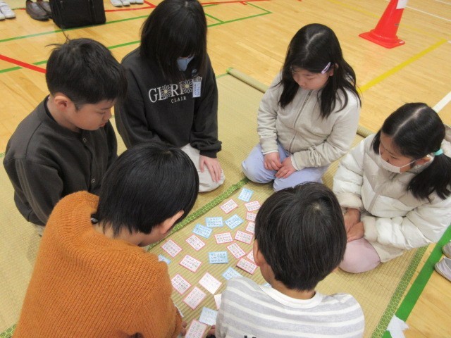 今日は、かるた大会が行われました。練習の成果を発揮し、優勝を目指して取り組みました。