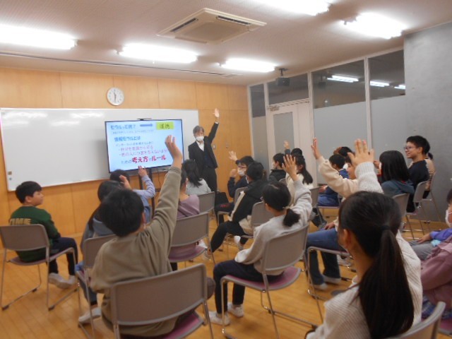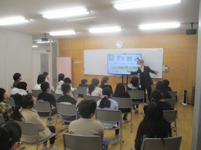 富山市教育センターの方をお招きして、クラスごとに情報モラル講座を受講しました。具体的な事例を通して情報モラルやネット社会を安全に生きる方法について学び、“判断力”と“強い心”をもつことが大事であることを知りました。これからの生活に生かせることを、一人一人がじっくり考える機会となりました。