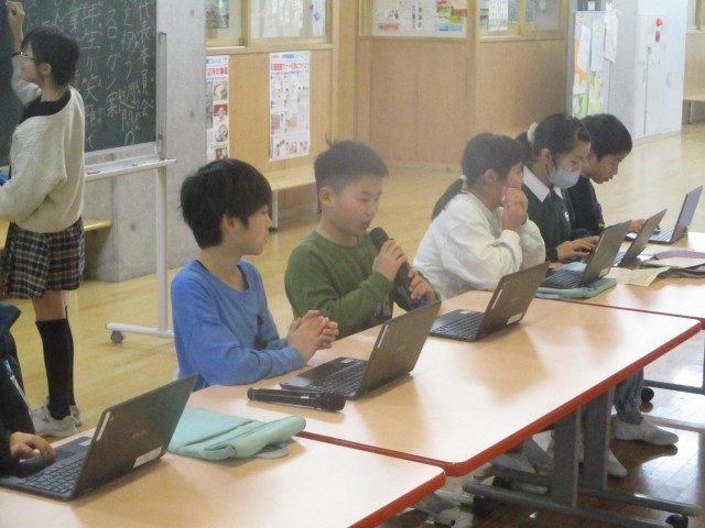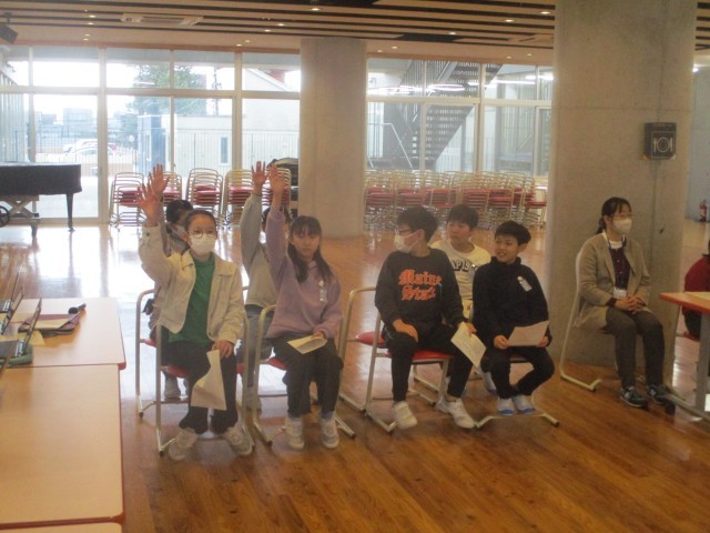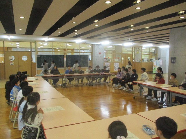今回は1年生から4年生の学級代表が集まり、卒業を祝う週間のスローガンを話し合う代表委員会が開催されました。5年生の卒業お祝いプロジェクト実行委員が中心となって進行し、熱心な話合いがされました。