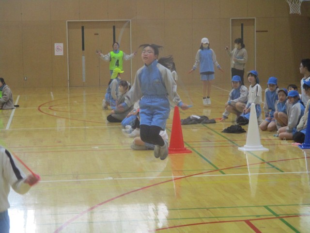 なわとび集会が開催され、2日間に分けて、短なわとび、長なわとびの2つの種目に取り組みました。子供たちは、毎日の練習の成果を出し切ろうと、最後の1秒まで諦めずに粘り強く頑張りました。子供たちの表情から充実感を感じ取ることができました。