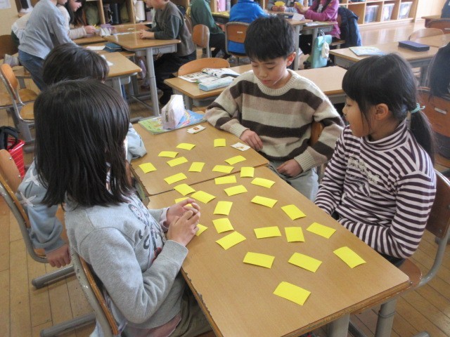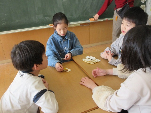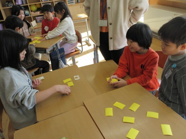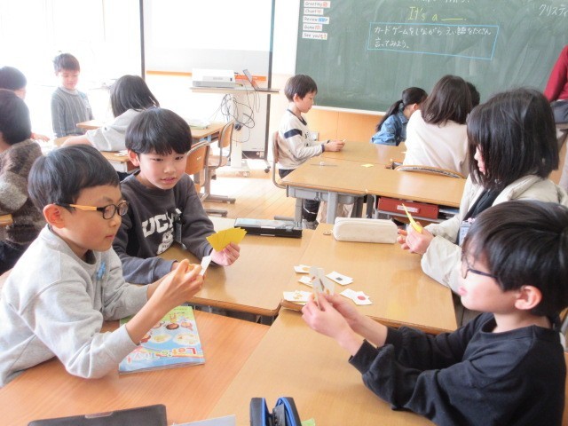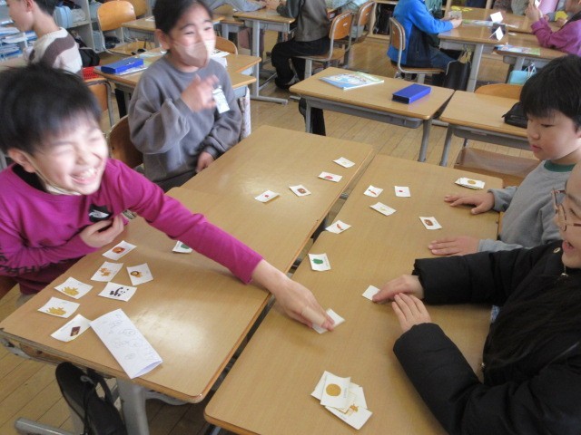 外国語科ではカードゲームを通して、食べ物や動物の名前を楽しく学んでいます。