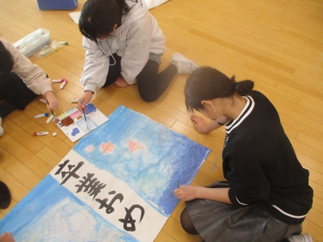 5年生は連日、「卒業お祝いプロジェクト」を進め、6年生の卒業をお祝いする準備をしています。「卒業を祝う集会・縦割り班活動」「卒業お祝い放送」「6年生への感謝の手紙・感謝の掲示物」の3つのチームに分かれ、子供たち同士で考え、話し合ったことをもとに、日々活動に取り組んでいます。5年生が全校の中心となって、積極的に活動に取り組む姿から、6年生から最高学年のバトンを引き継ぐ強い意欲が感じられます。