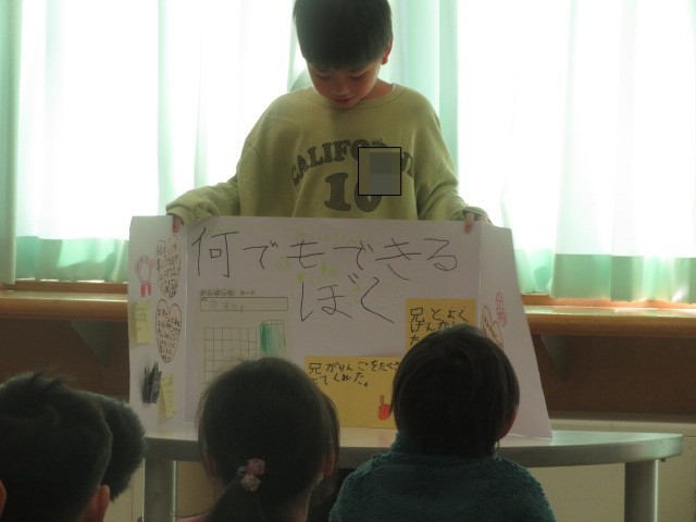 今日の学習参観では、これまでの成長や頑張ったことをまとめ、保護者の皆様の前で発表しました。本番ということもあり、緊張していた子供もいましたが、練習の成果を発揮し、堂々と発表することができました。無事に発表を終えて、満足そうな表情を浮かべている子供たちでした。