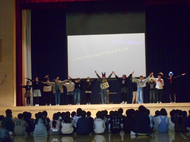 卒業を祝う週間の最終日に、5年生が中心になって、練習や準備を重ねてきた「卒業を祝う集会」が行われました。5年生が司会を務め進行し、6年生のみなさんに楽しんでもらえるようにたくさんの工夫を凝らしました。また、1〜4年生までの各学年が6年生との最高の思い出をつくるために様々な企画を考え、発表してくれました。卒業が近づいている6年生を含め、全校で楽しい時間を過ごすことができました。