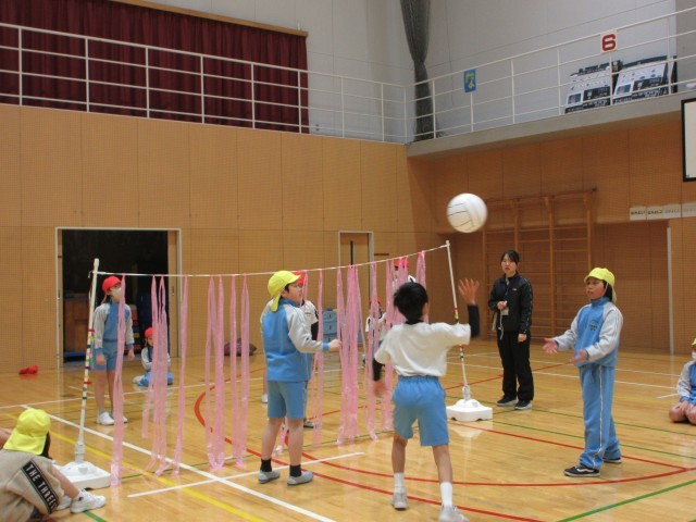 体育科では、「キャッチバレーボール」をしています。練習を重ねるごとに、ボールをつないだりアタックをしたりすることが上手にできるようになってきました。学習のまとめとして、トーナメント戦をしています。