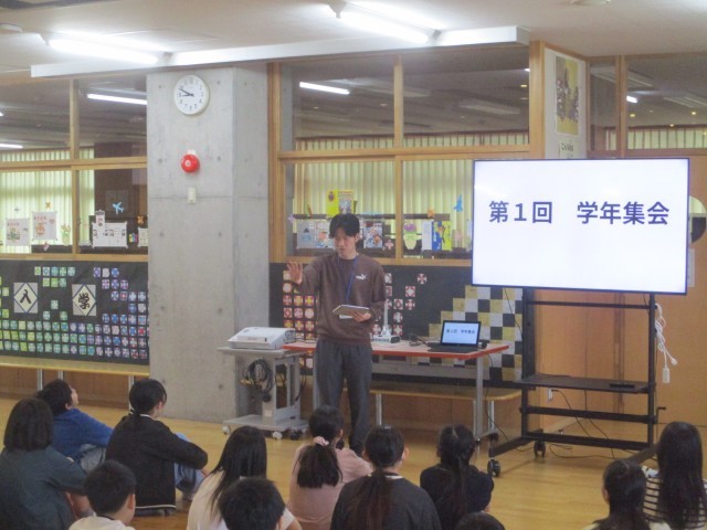 第1回の学年集会を開き、学年目標や最高学年として大切にしていきたいことを確認しました。子供たちは、1年間の学校行事や学年行事について考えたり、新しい担任の先生の話を真剣に聞いたりしながら、6年生として臨むこれからの1年間をイメージしていました。