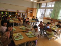 2回目の学校探検は、グループごとに自分の気になる場所へ行きました。職員室、給食室、家庭科室、理科室、プール広場を探検しました。探検後は、自分が見付けたことを友達と伝え合いました。