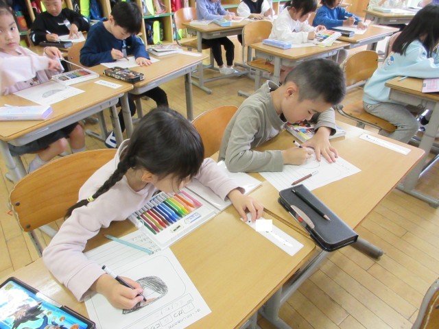 朝顔の種を観察しました。とても小さい種ですが、子どもたちは細かいところまでよく見てカードに書きました。
