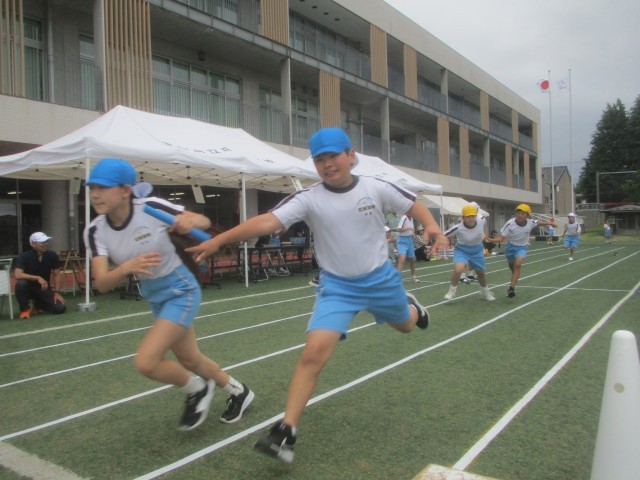 高学年リレーでは、今までのバトンパスの練習で意識したことを思い出し、どの団も最後までバトンを繋ぐことができました。各団から選ばれた代表選手が全力でゴールを目指す姿はとても輝いていました。